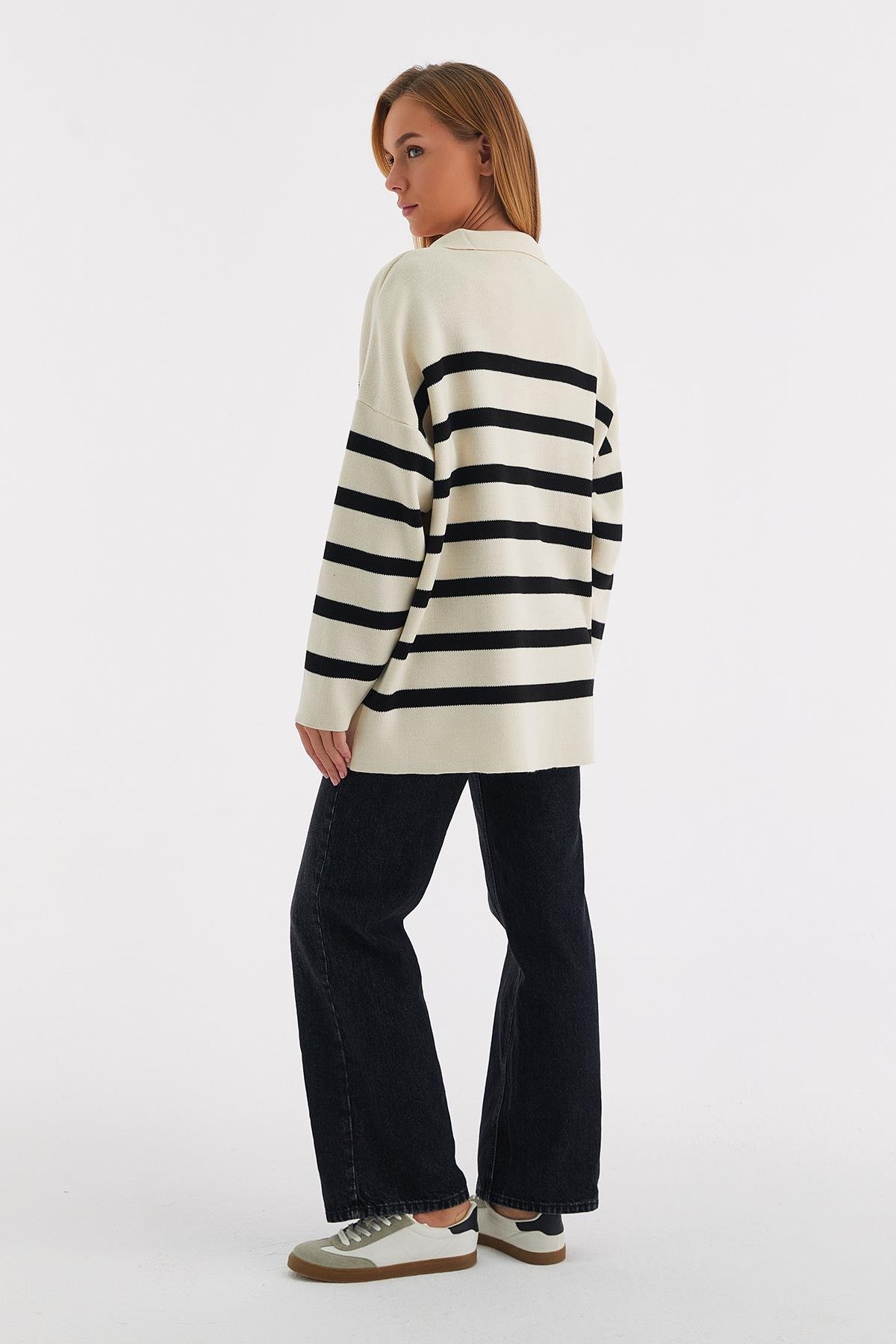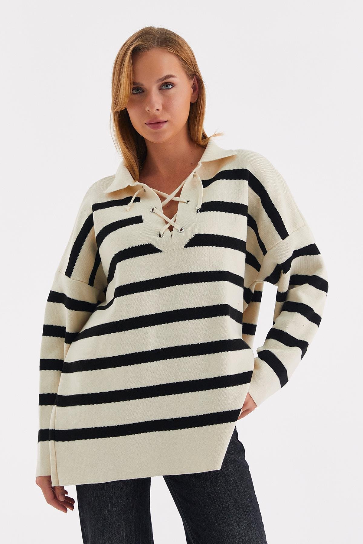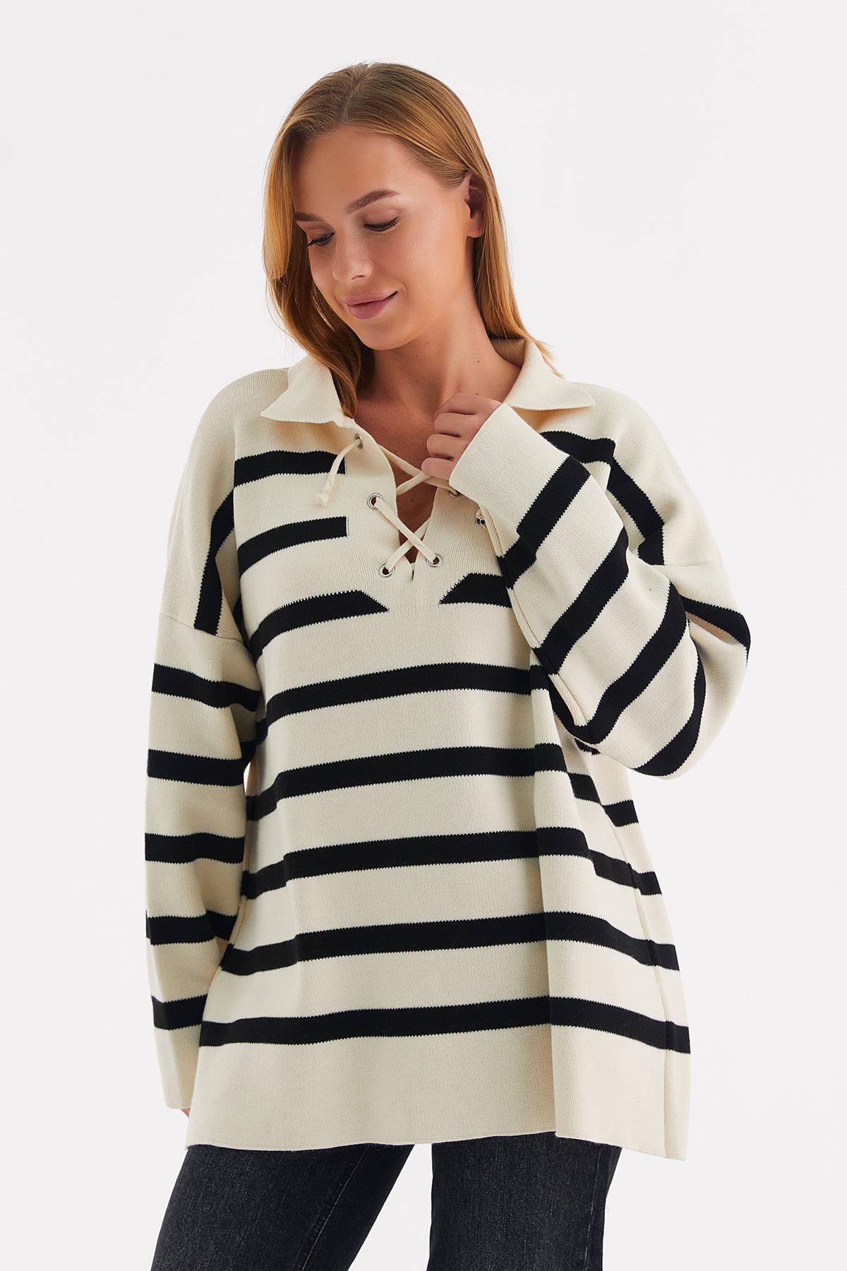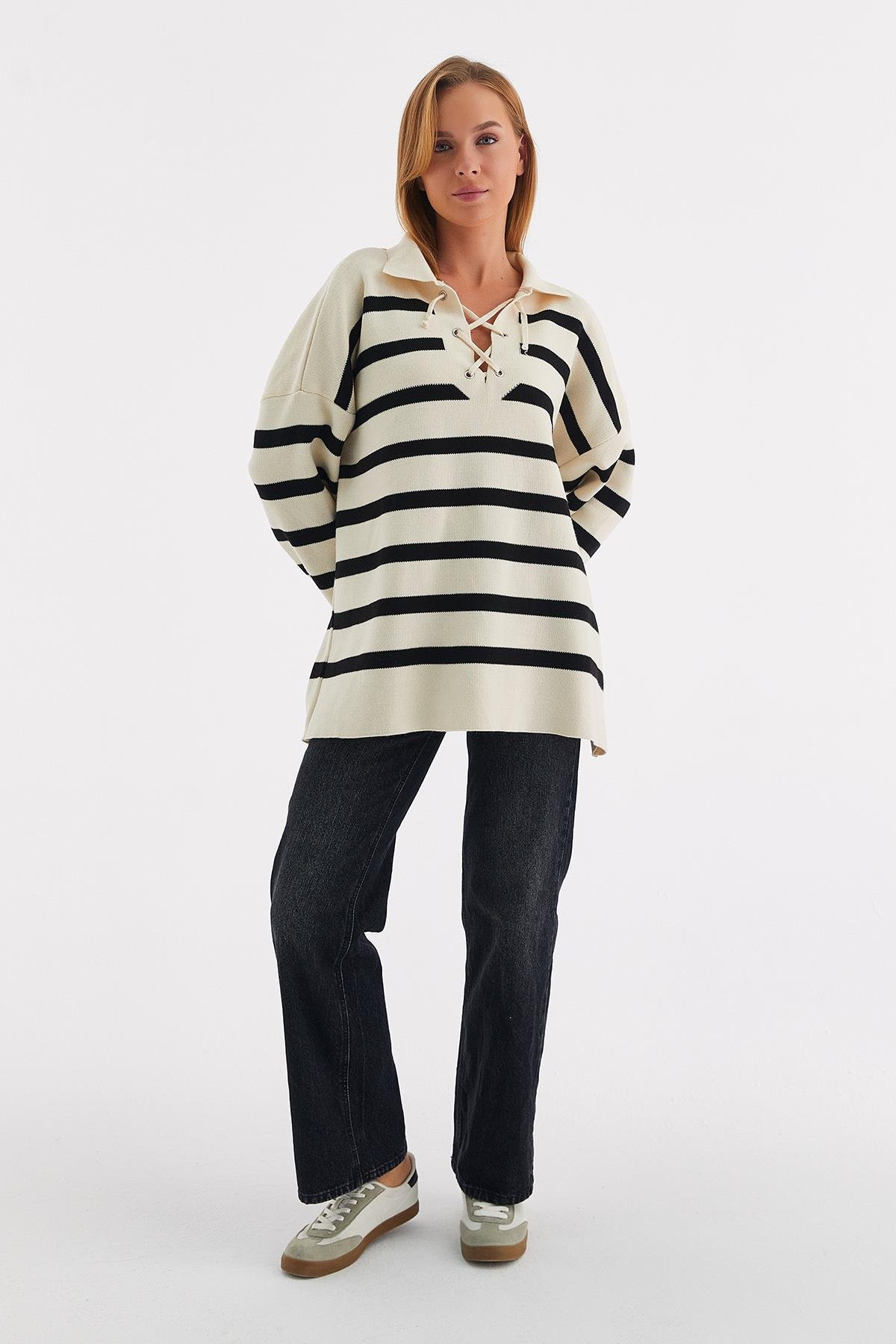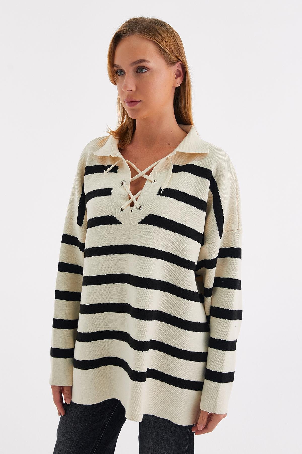 Yakası İpli Çizgili Tunik Siyah (TB027_001)