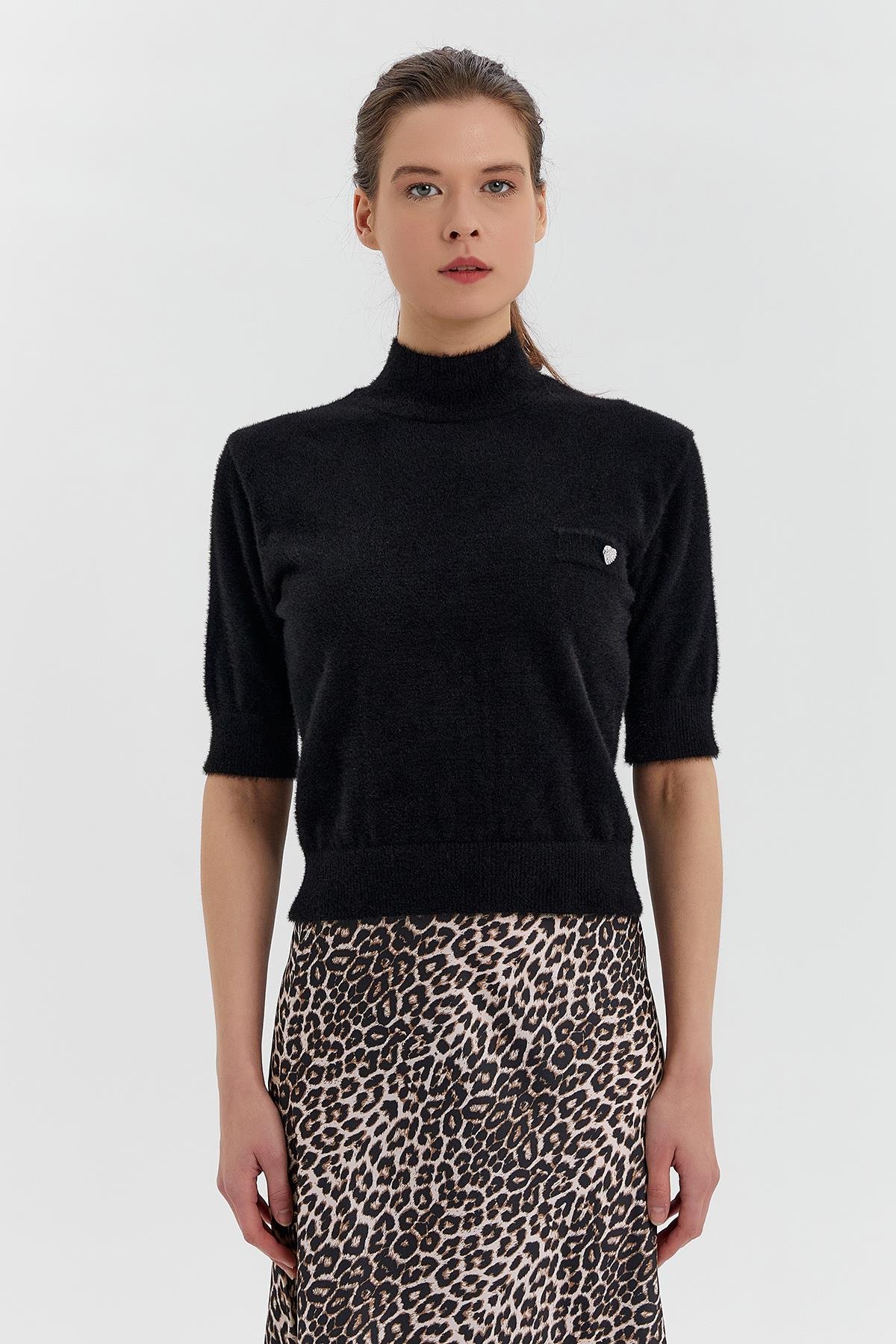 Yarım Kol Boğazlı Kazak Siyah (CH0393_001)