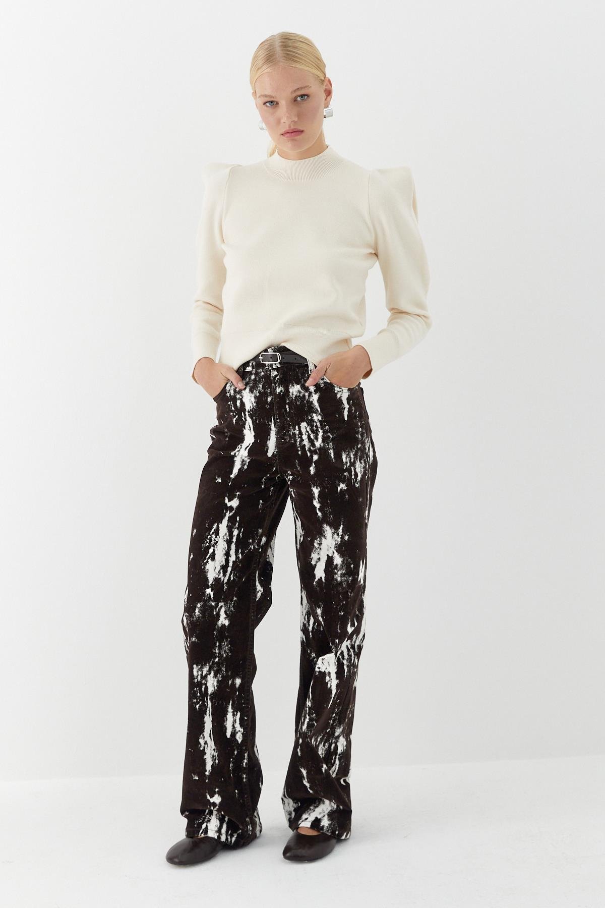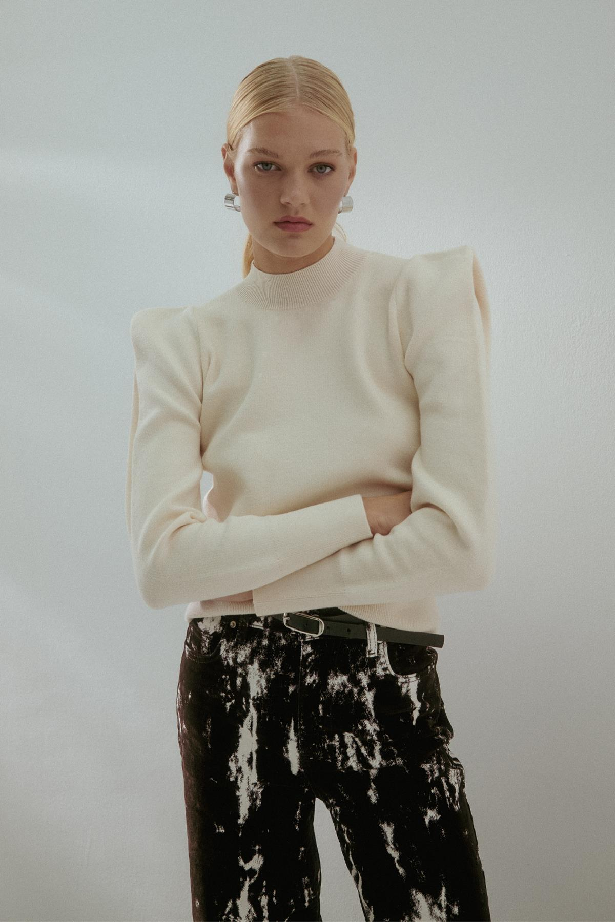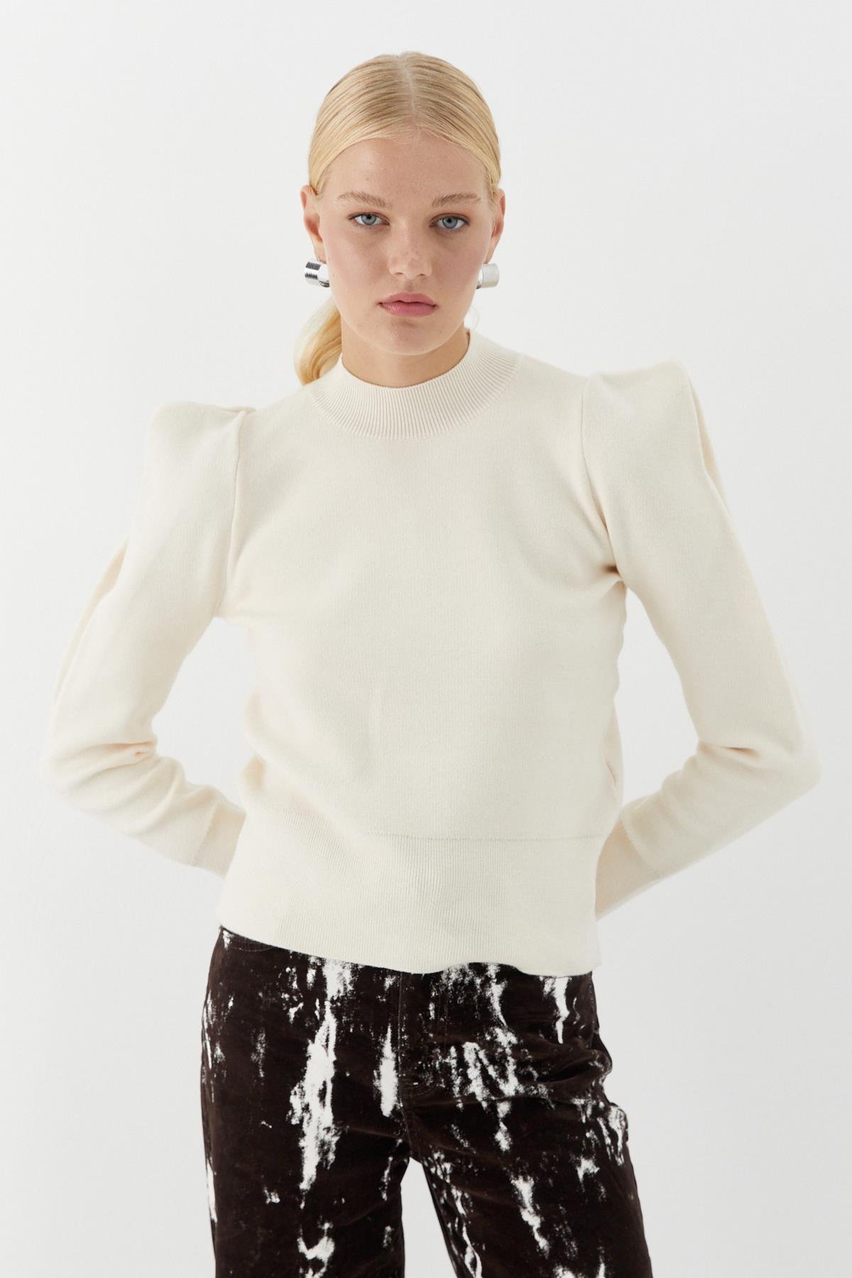 Yüksek Yaka Geniş Vatkalı Kazak Siyah Yüksek Yaka Geniş Vatkalı Kazak Ekru