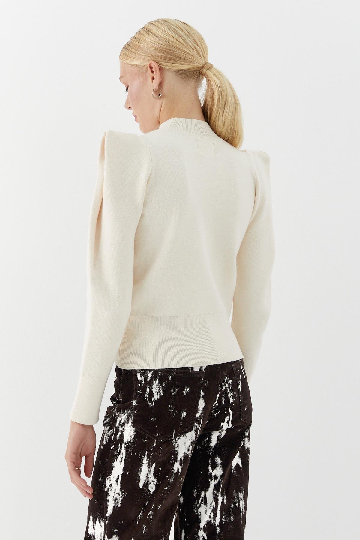 Yüksek Yaka Geniş Vatkalı Kazak Ekru (ST1055_019)