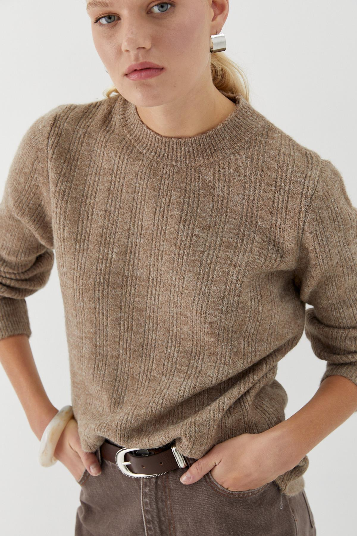 Yuvarlak Yaka Triko Kazak Kahverengi (MLAW25KZK0009_022)